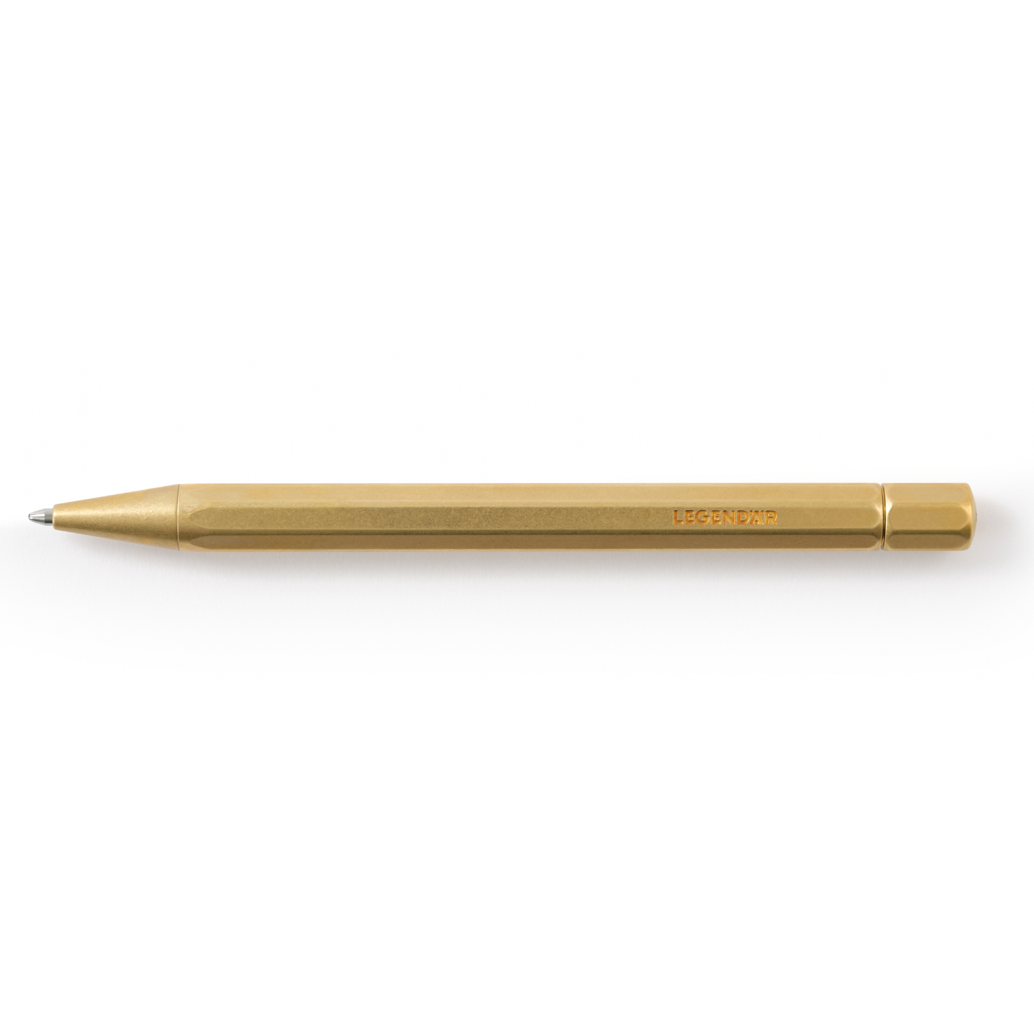 The heavyweight champion among ballpoint pens. This sturdy 38 gram ballpoint pen is milled from a single piece of solid brass using CNC technology. The polished surface features a temporary non-tarnishing finish. The finish gradually disappears after a few days of use, but can also be buffed away with a soft cloth. Includes one Schmidt Jumbo Refill P900 M in black. The pen is compatible for use with all Schmidt P900 refills or with refills for the Parker G2. Use: The refill is extended with the simple spring-loaded twist mechanism. Replacement of the Schmidt Jumbo Refill P900 is done by unscrewing the grooved cap at the top of the pen. Length 130 mm Diameter 9,75 mm